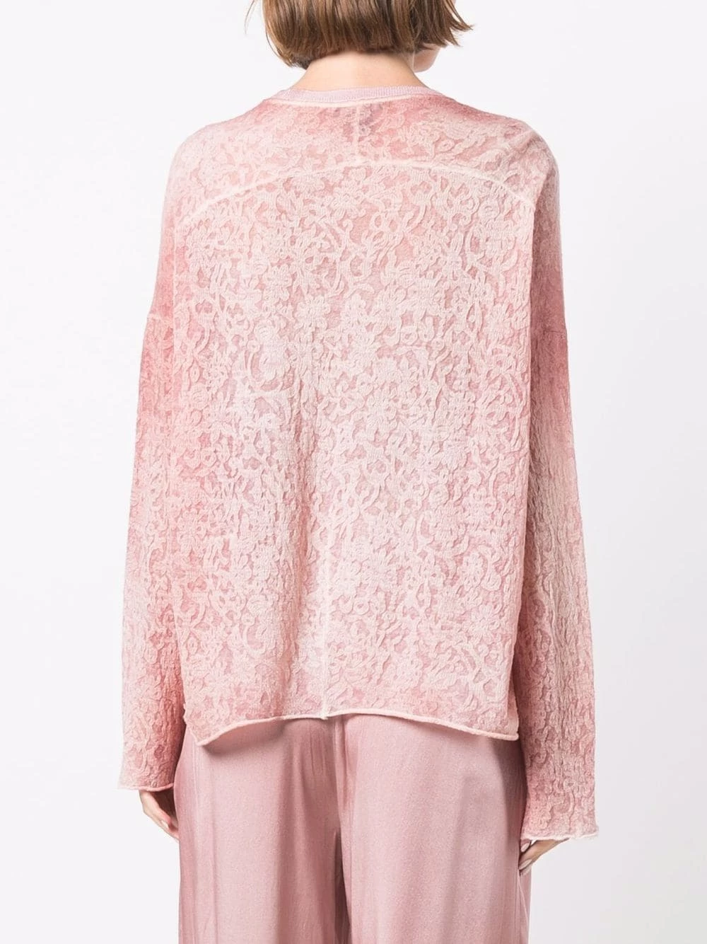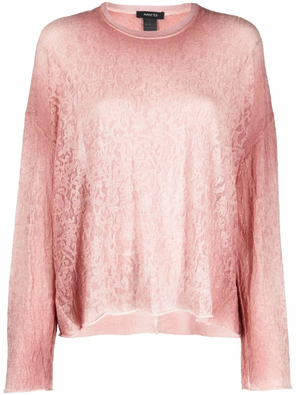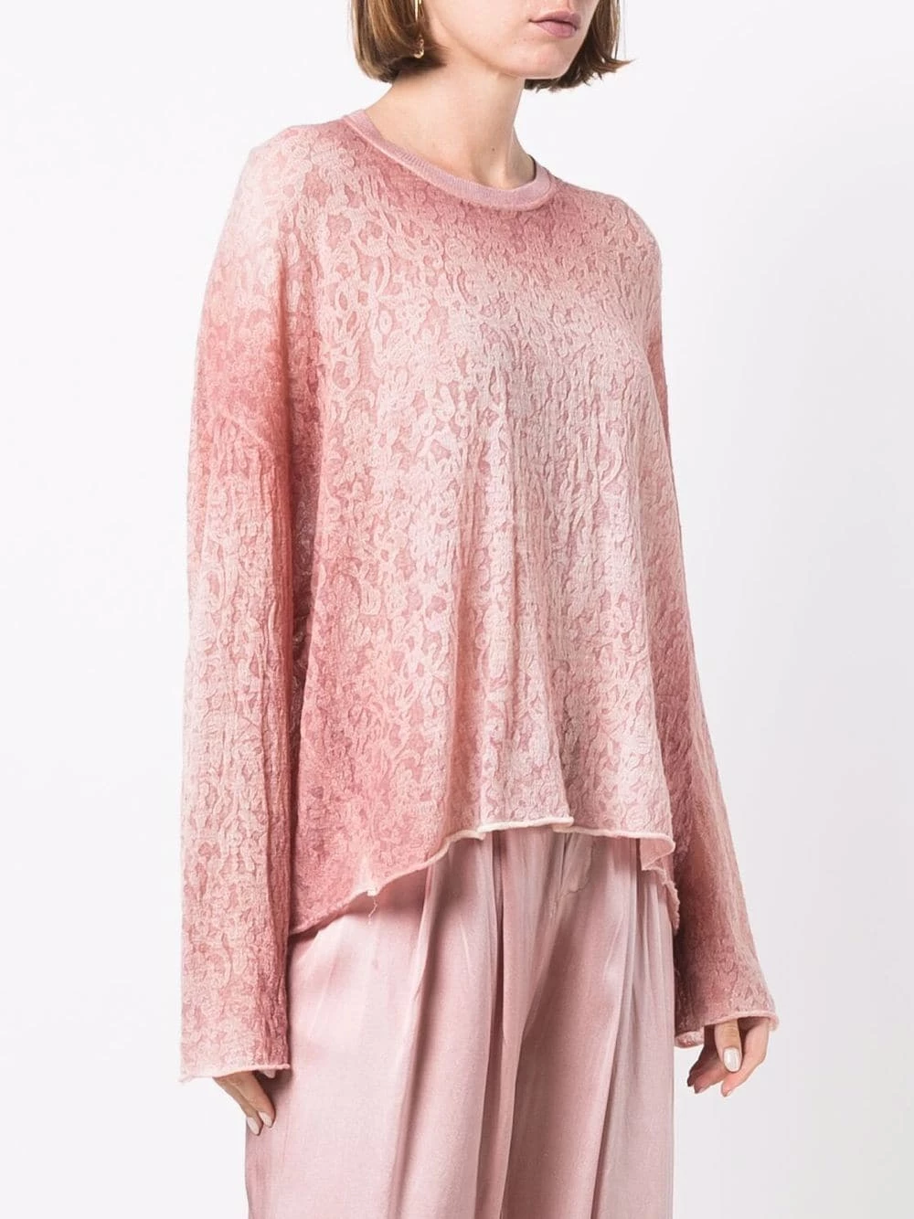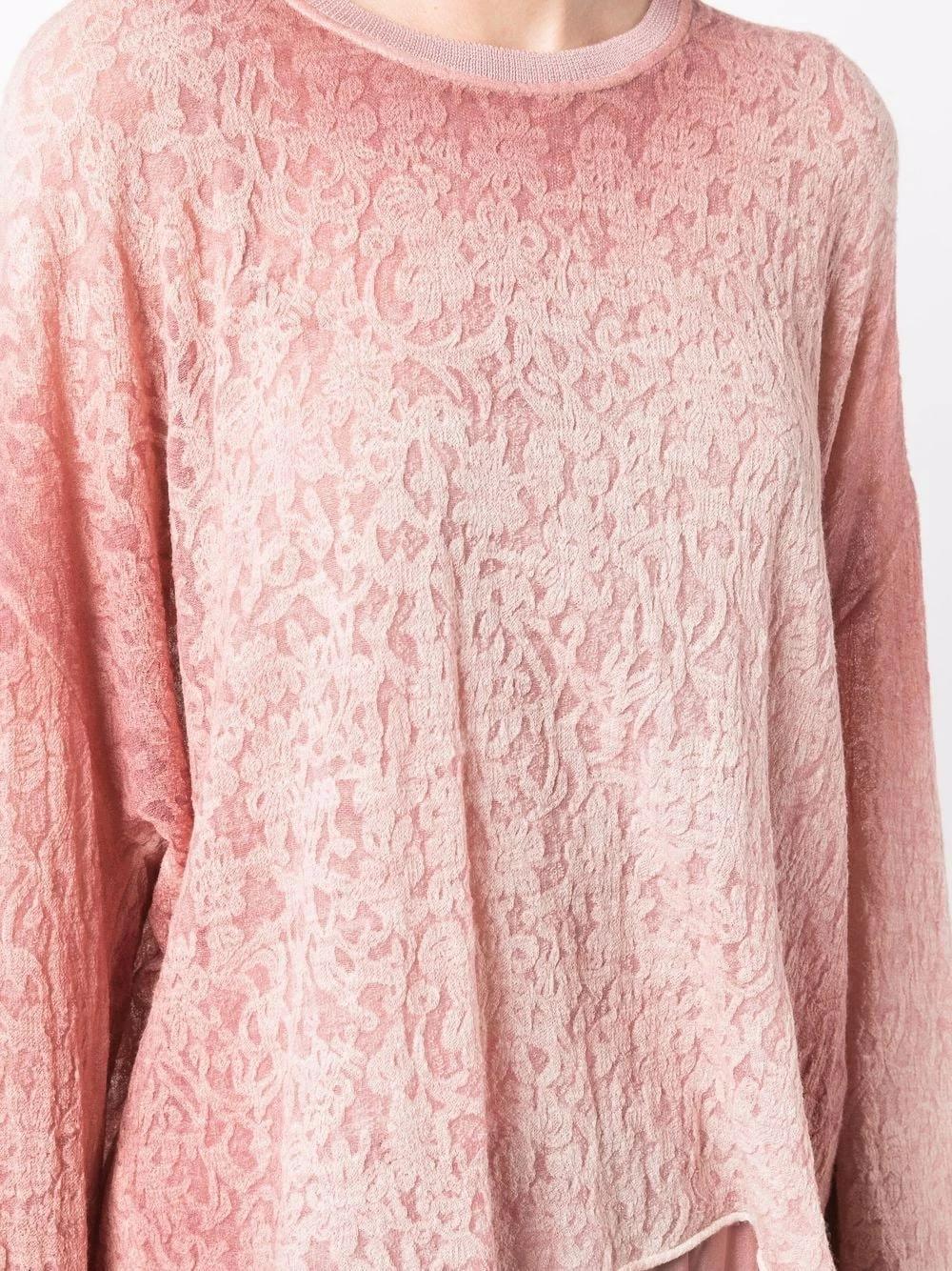 Maille fine, design en jacquard, encolure ras du cou, manches longues, ourlet droit.