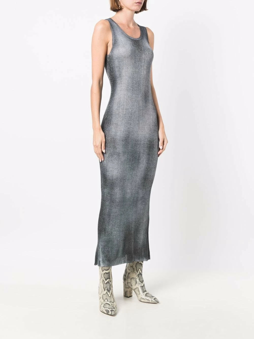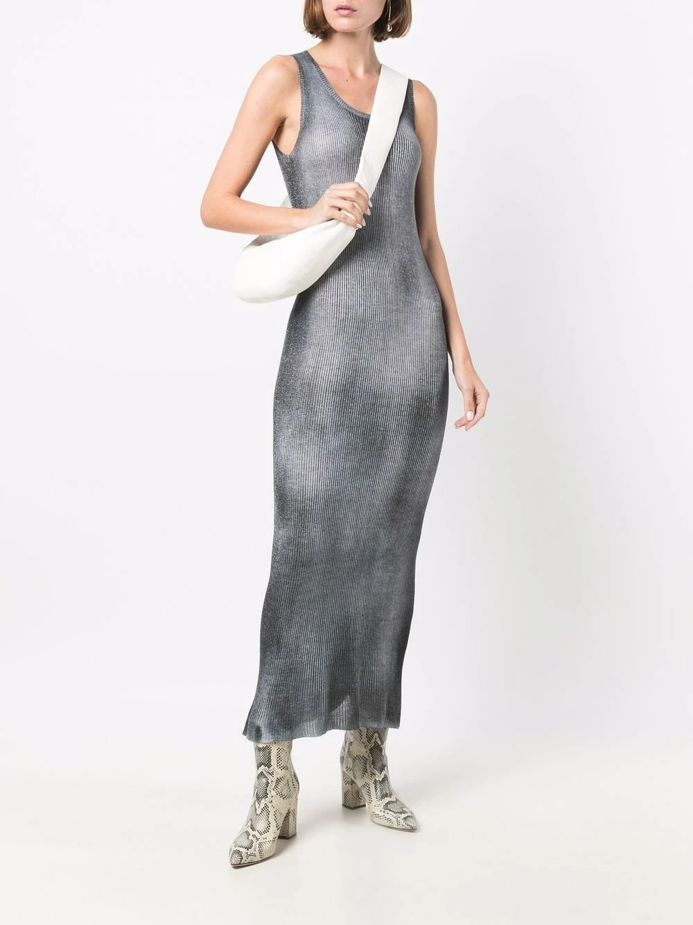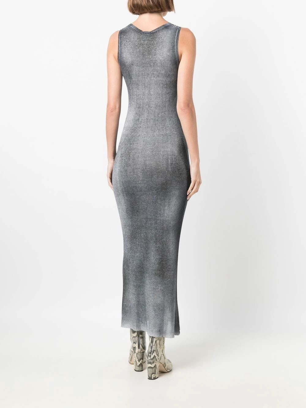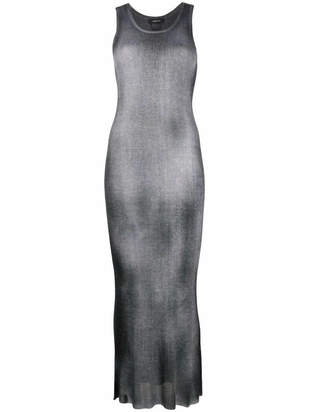 Détail nervuré, encolure arrondie, design sans manches, coupe mi-longue.