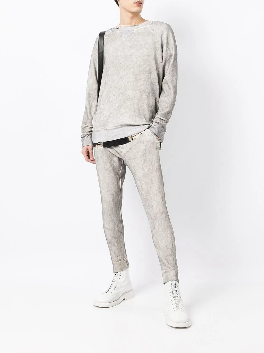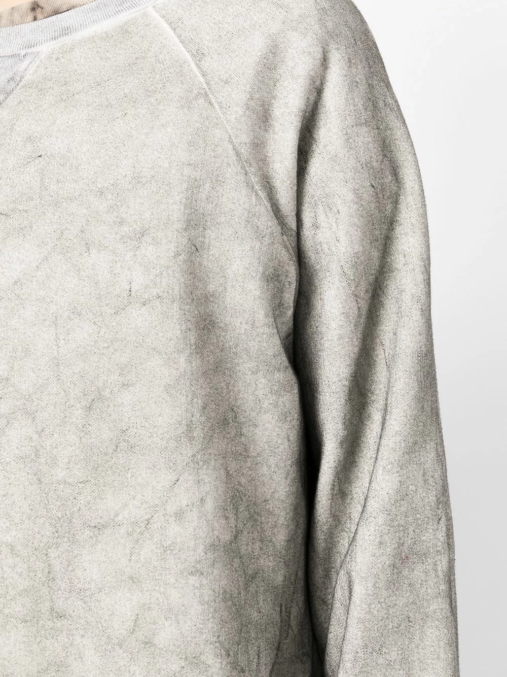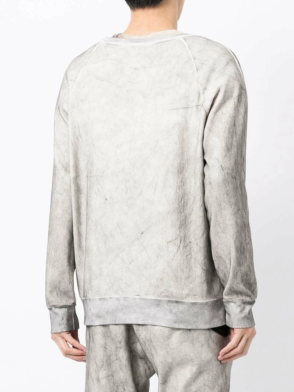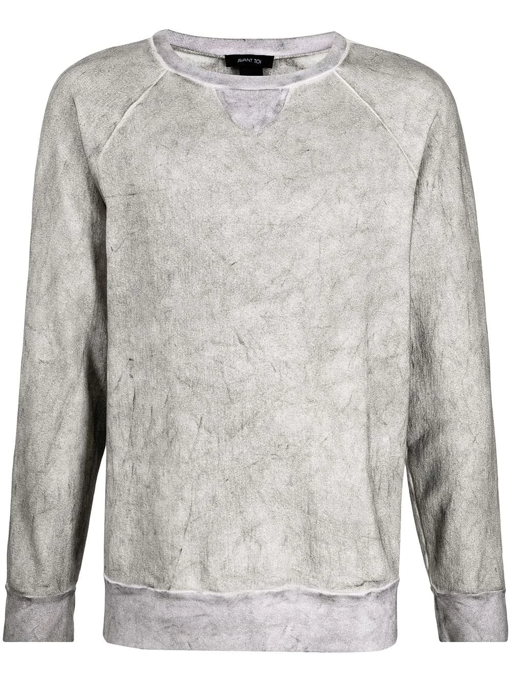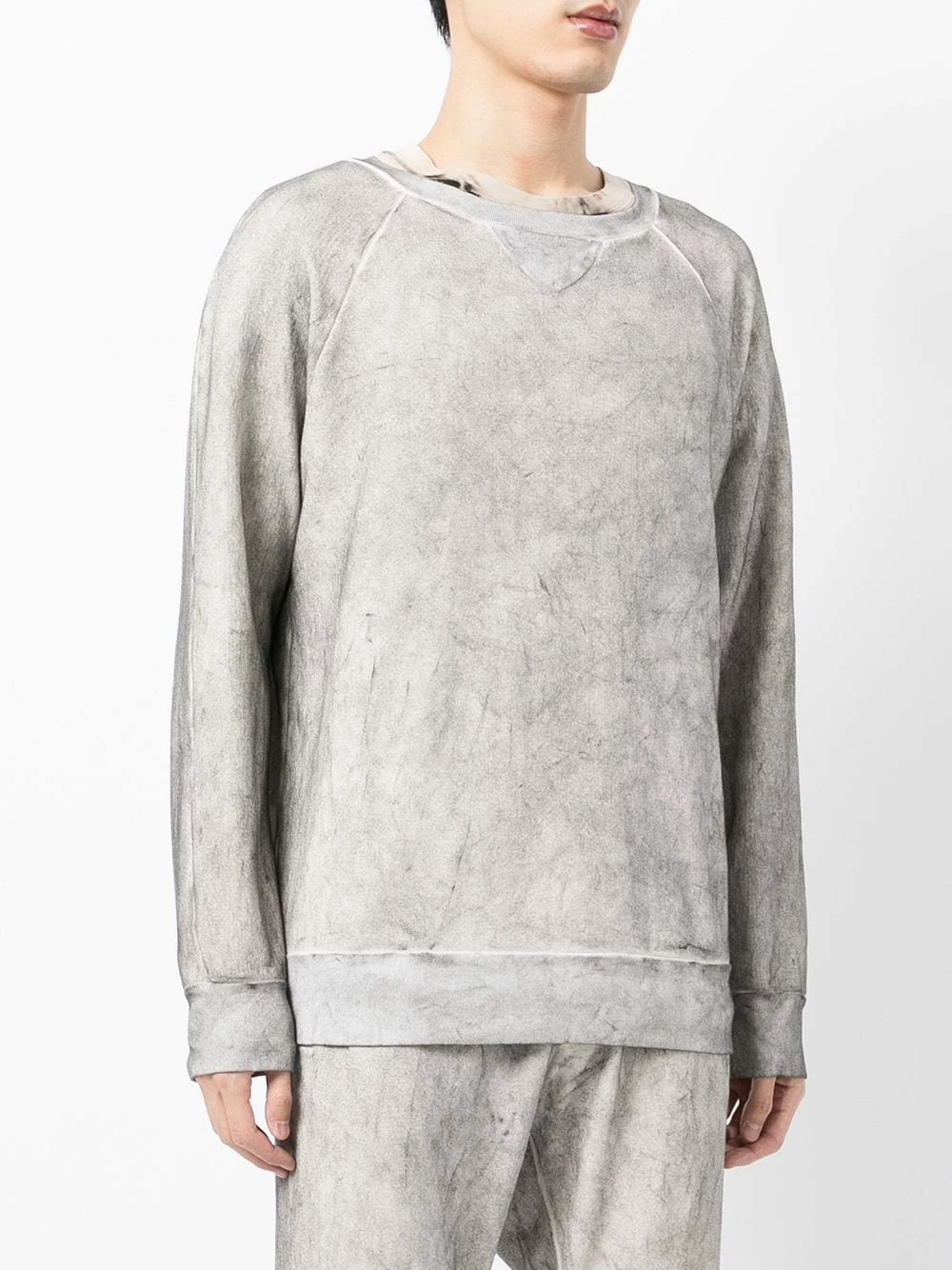 Encolure ras du cou, manches longues, poignets nervurés. Couleur : gris. Matière : coton.