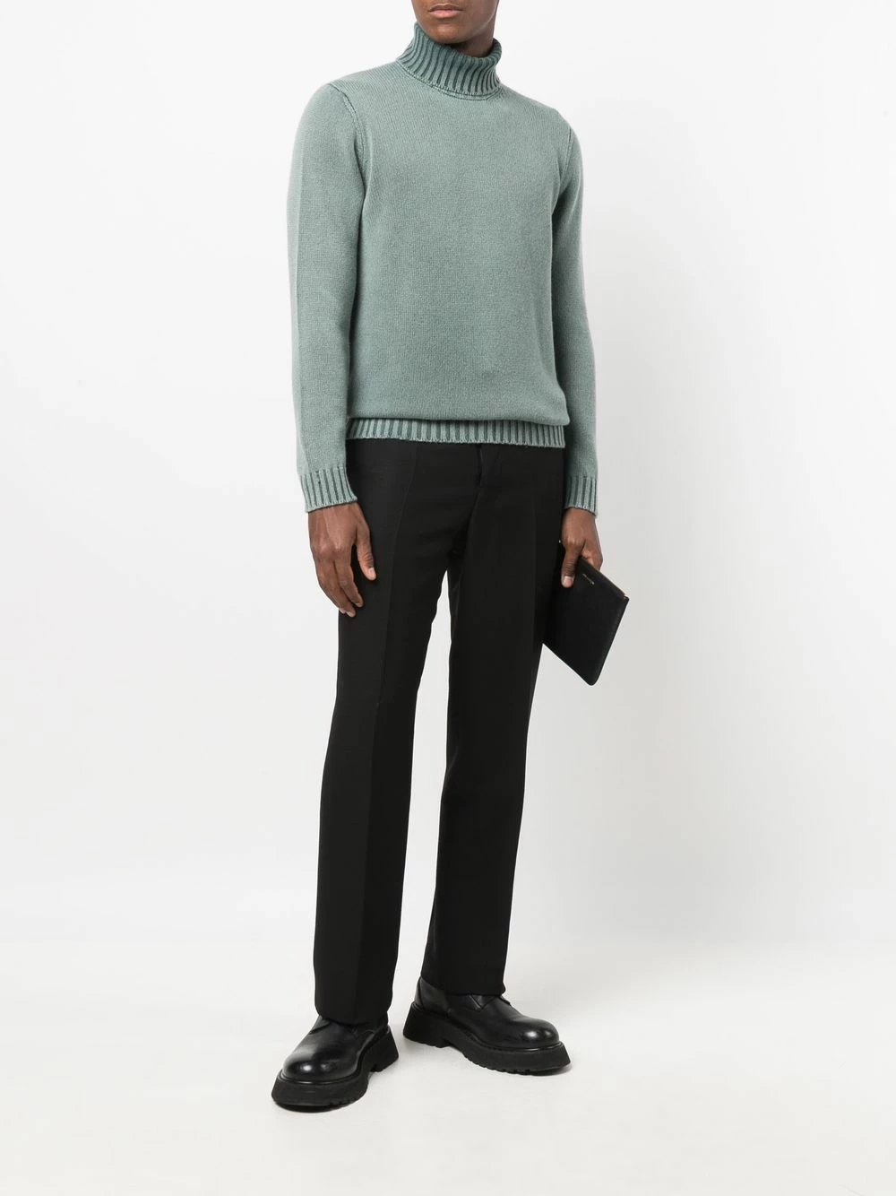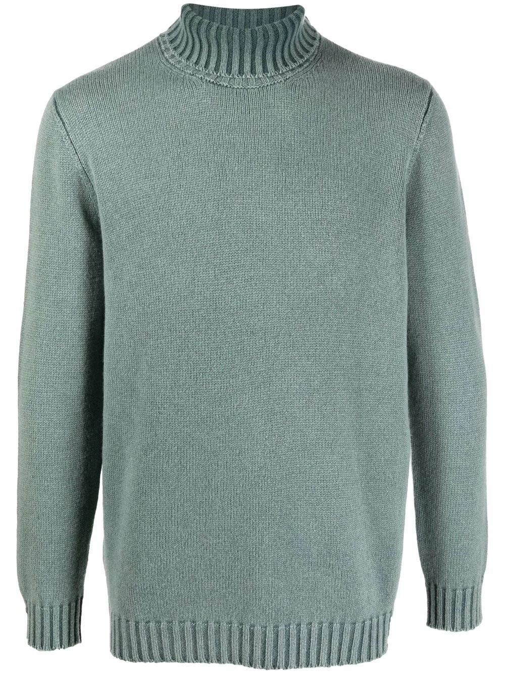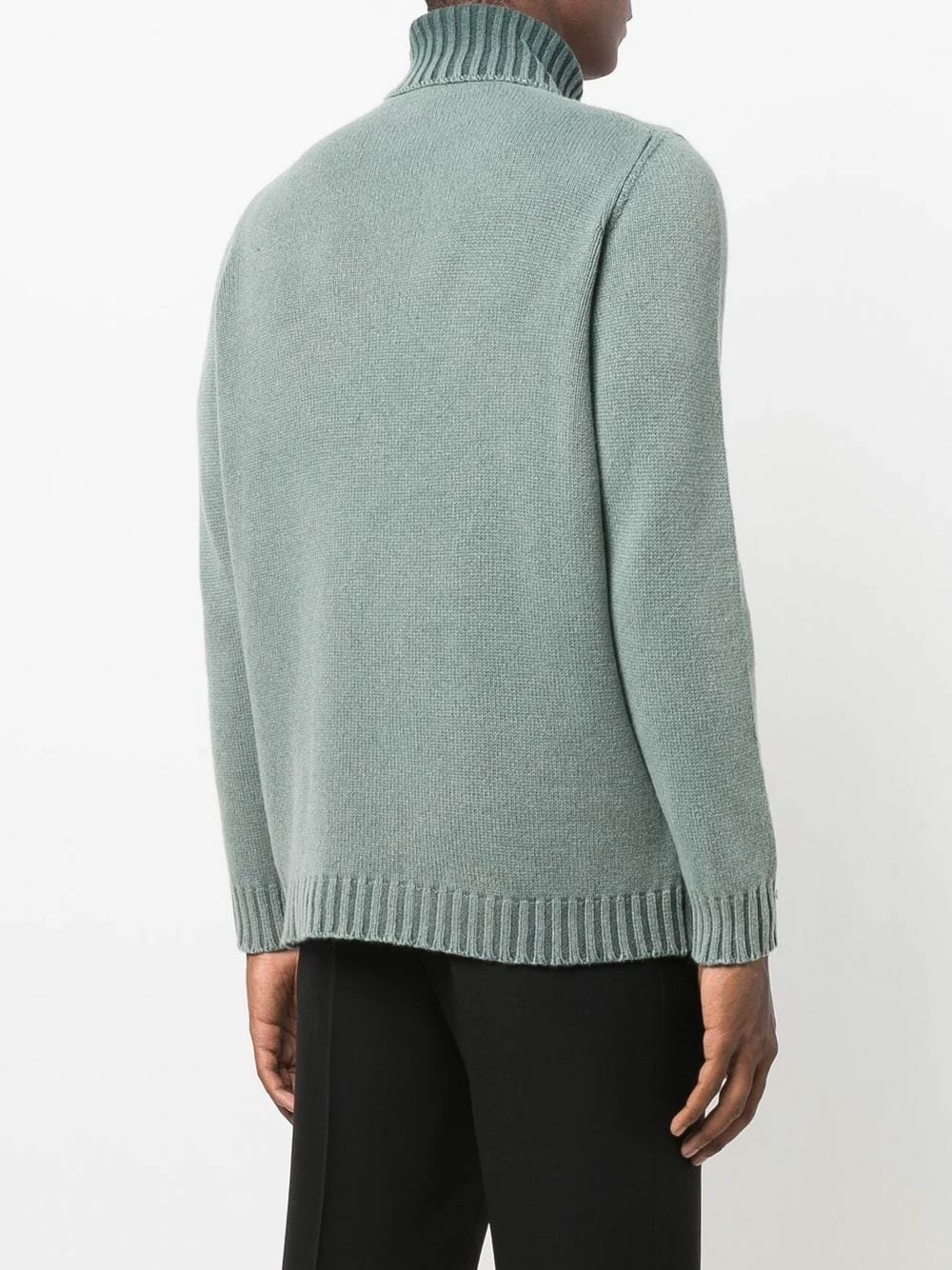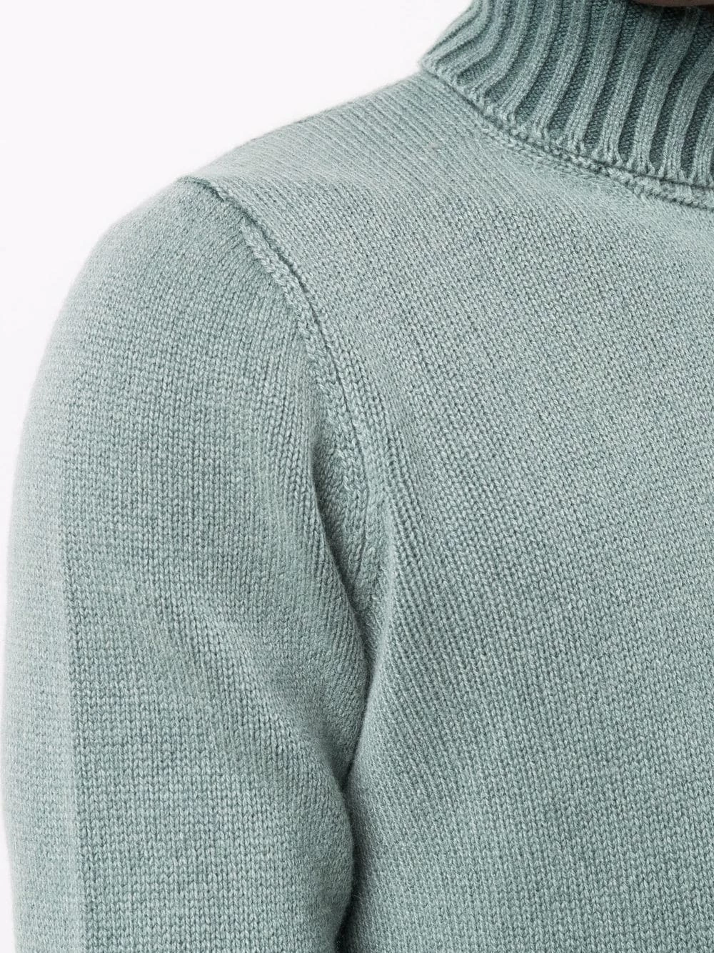 Bord en maille côtelée, col montant, manches longues, ourlet droit. Couleur : vert.