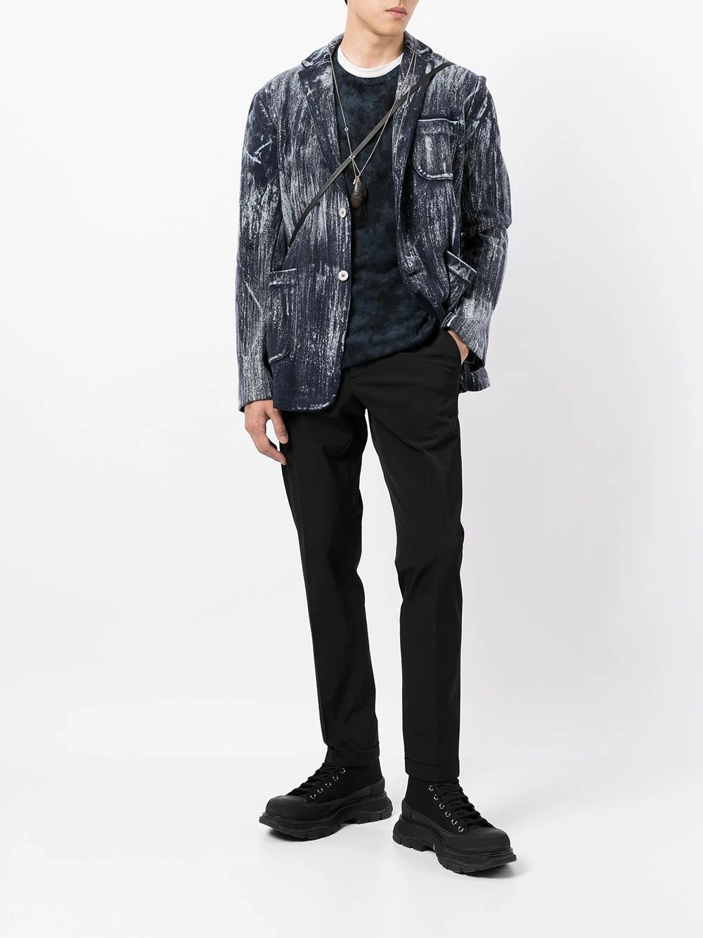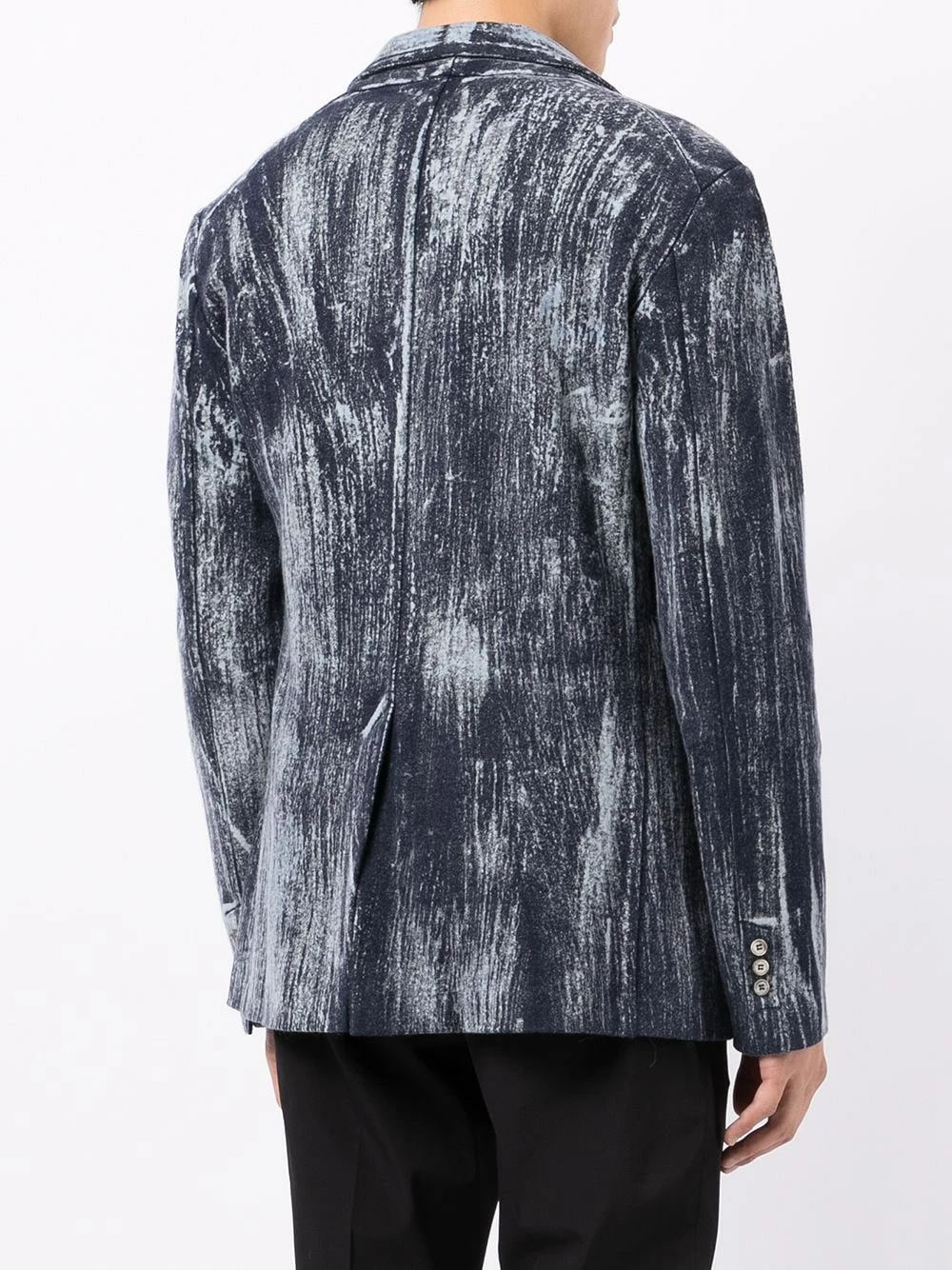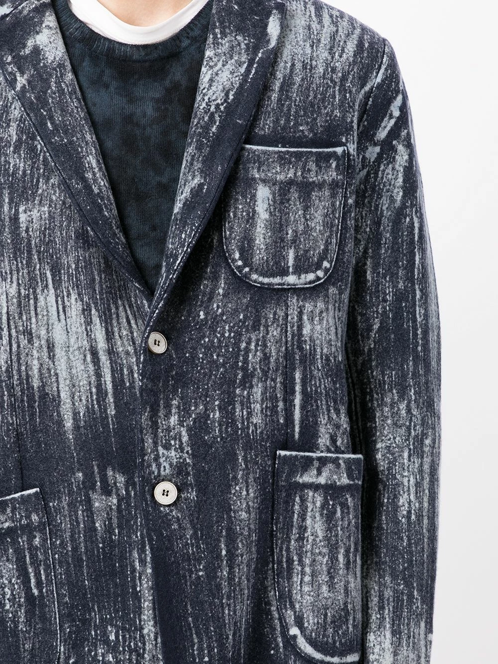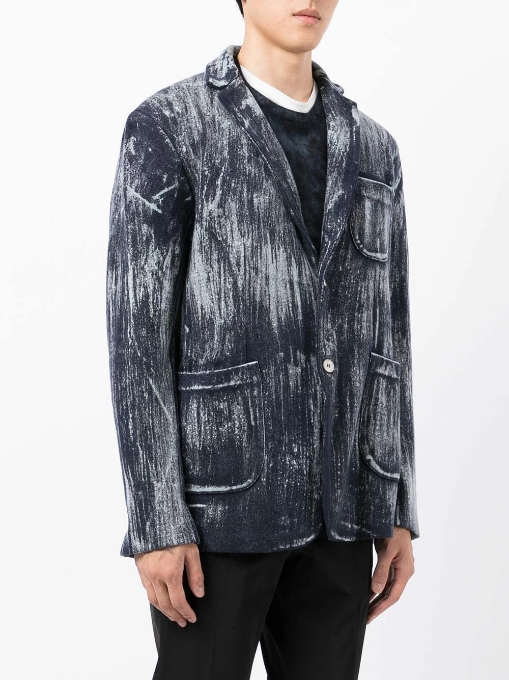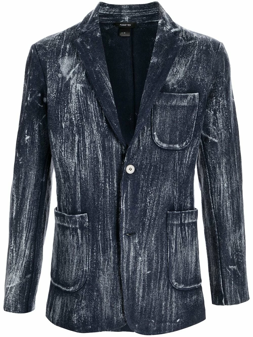 Effet délavé, revers crantés, boutonnière sur le devant, poche poitrine plaquée, manches longues, deux poches plaquées avant, fente arrière.