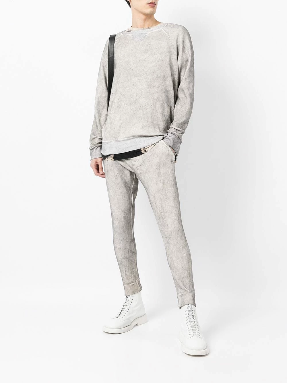 Ceinture élastique, coupe droite, poignets nervurés. Couleur : gris. Matière : coton.