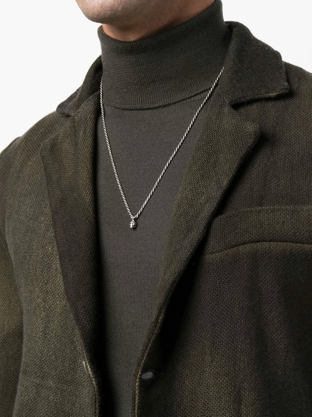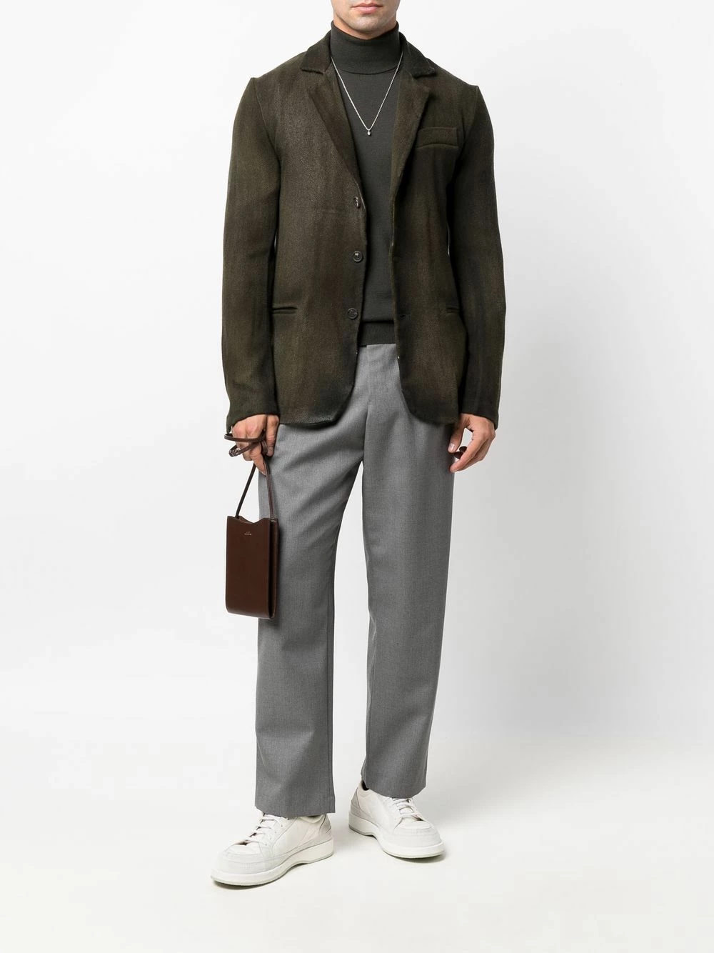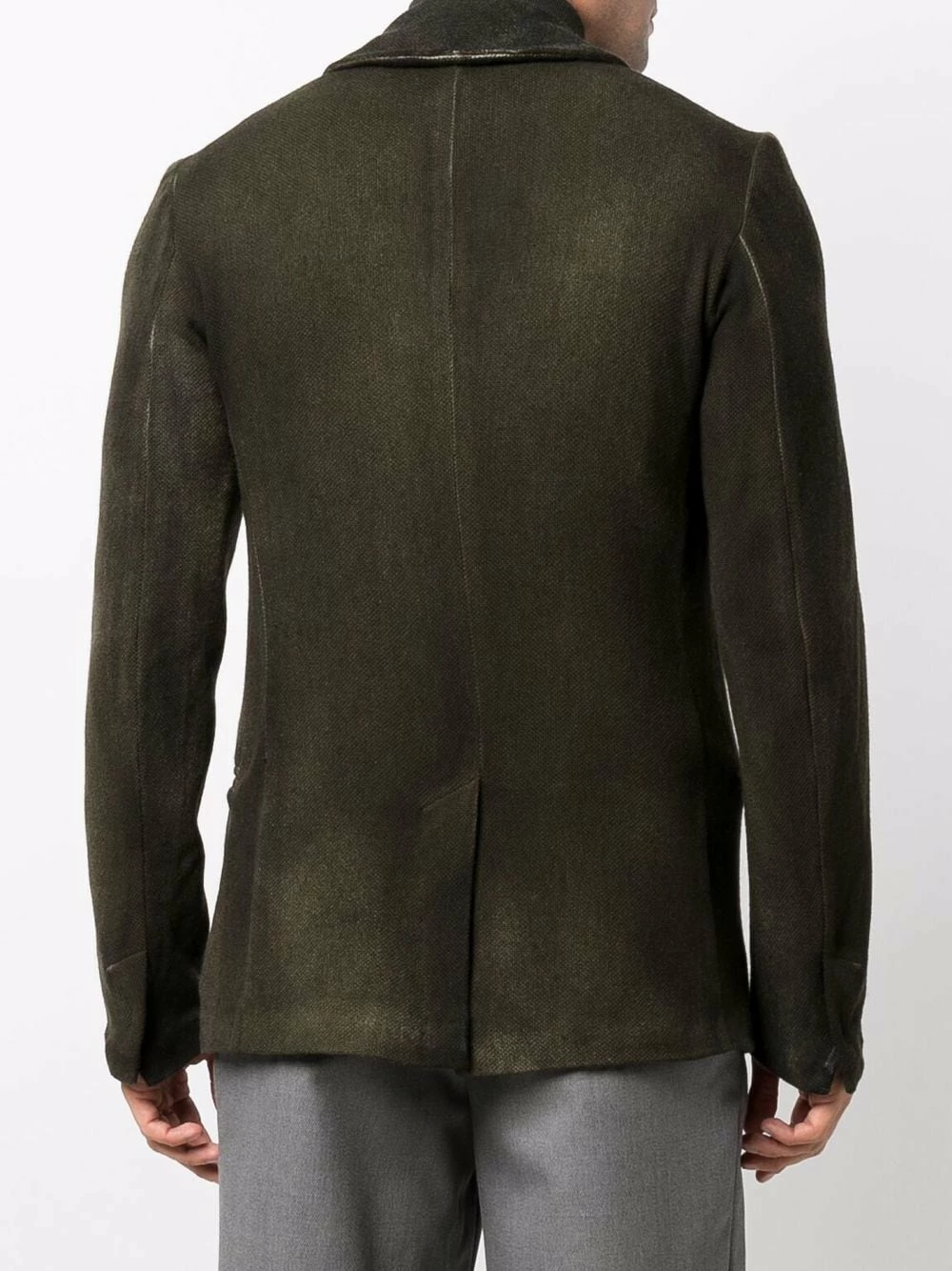 Maille fine, revers classiques, boutonnière sur le devant, manches longues, poche passepoilée sur la poitrine, deux poches passepoilées avant. Couleur : vert.