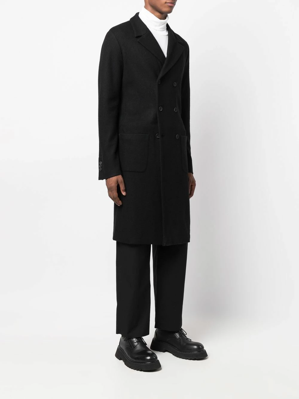 Maille fine, boutonnière croisée, manches longues, coupe mi-longue.