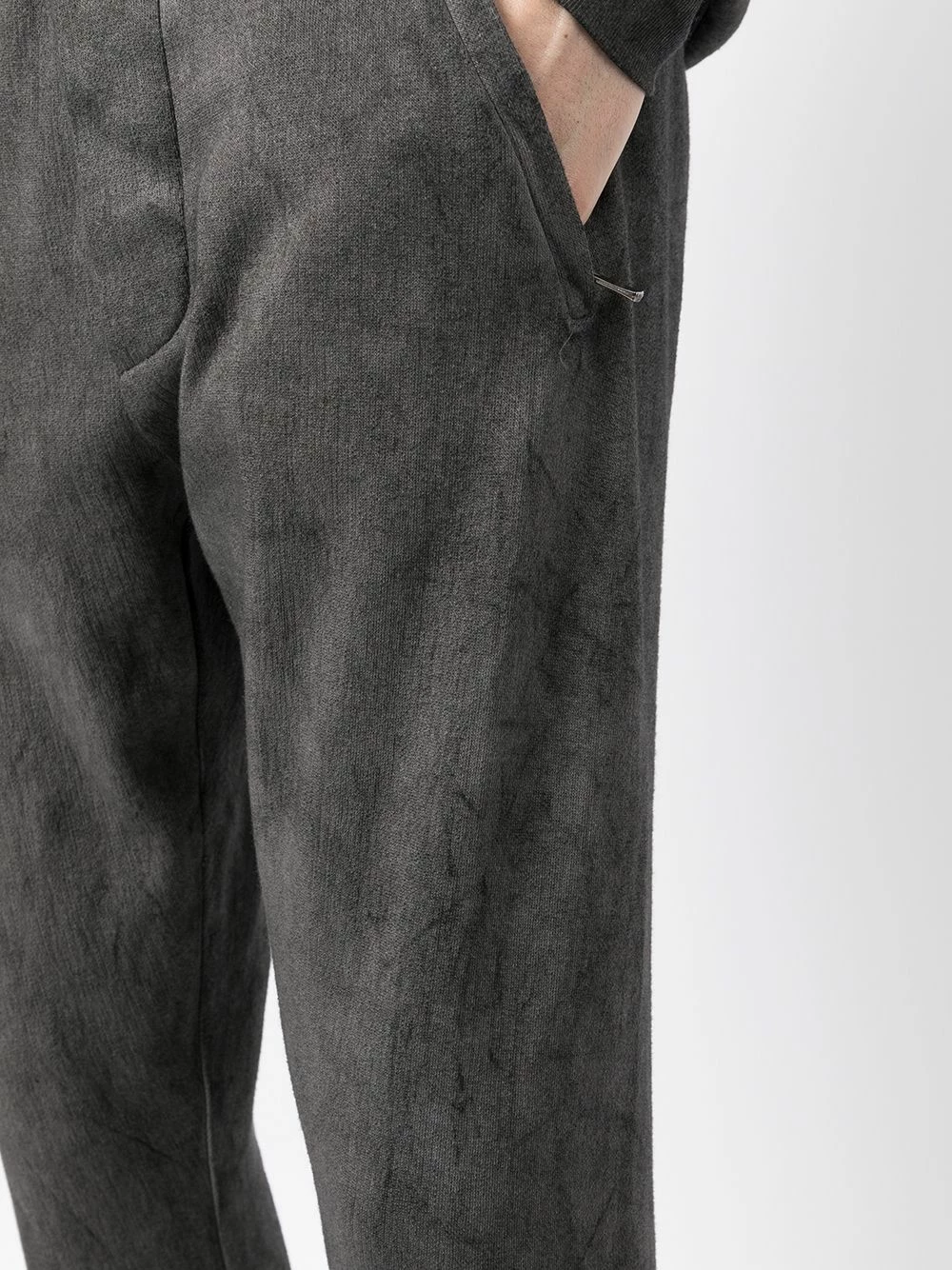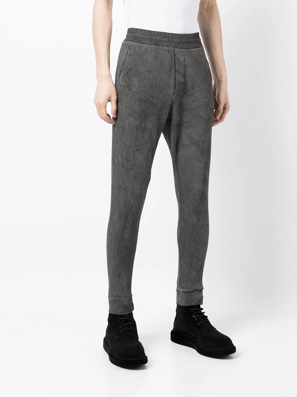 Ceinture élastique, deux poches latérales fendues, coupe droite, poignets nervurés. Matière : coton.