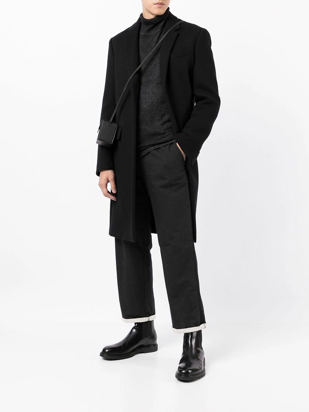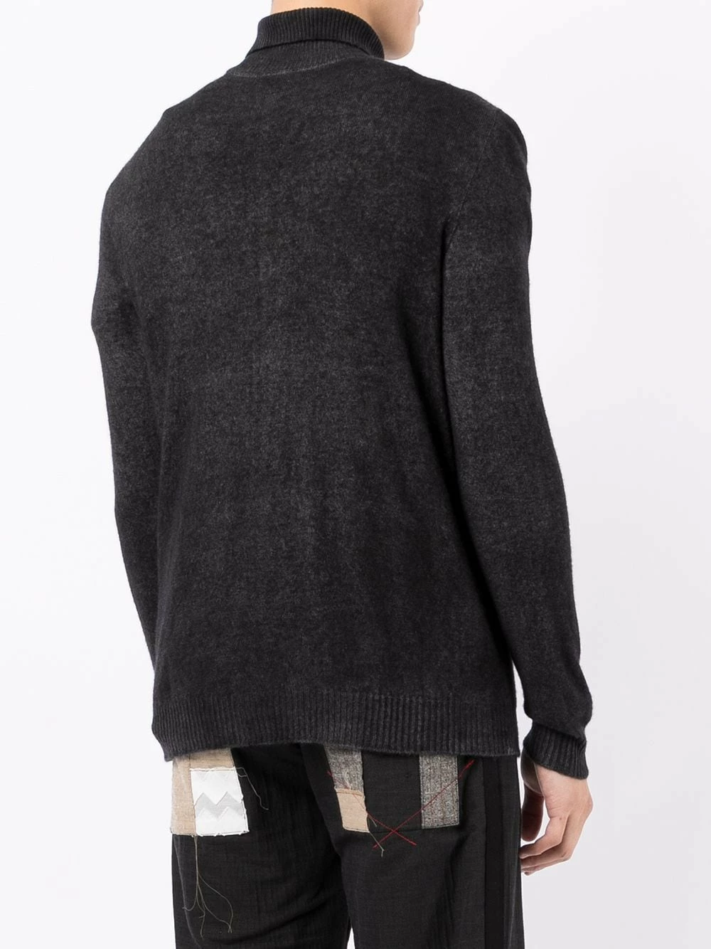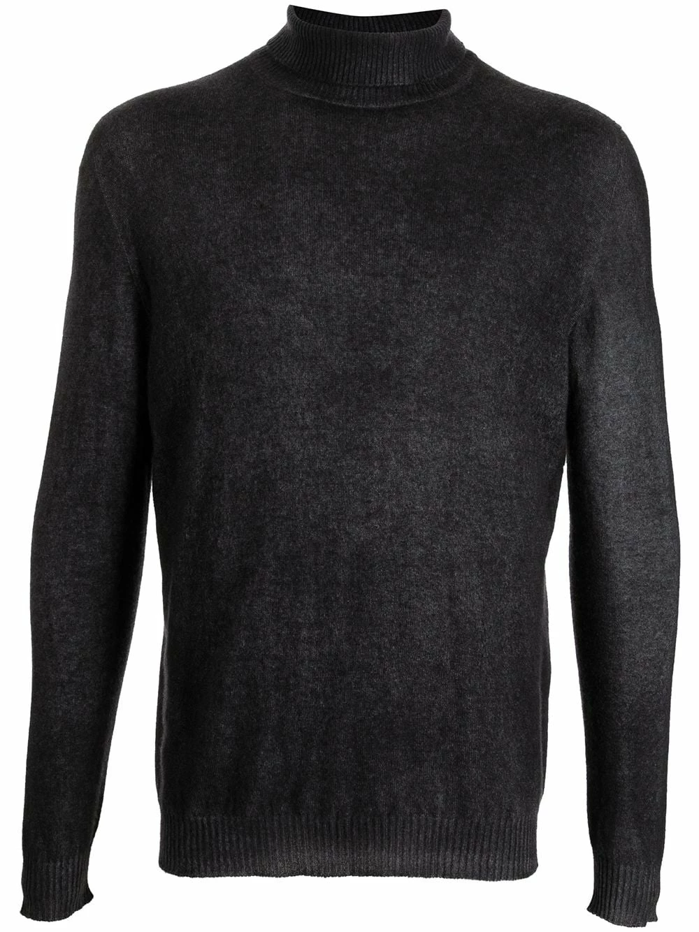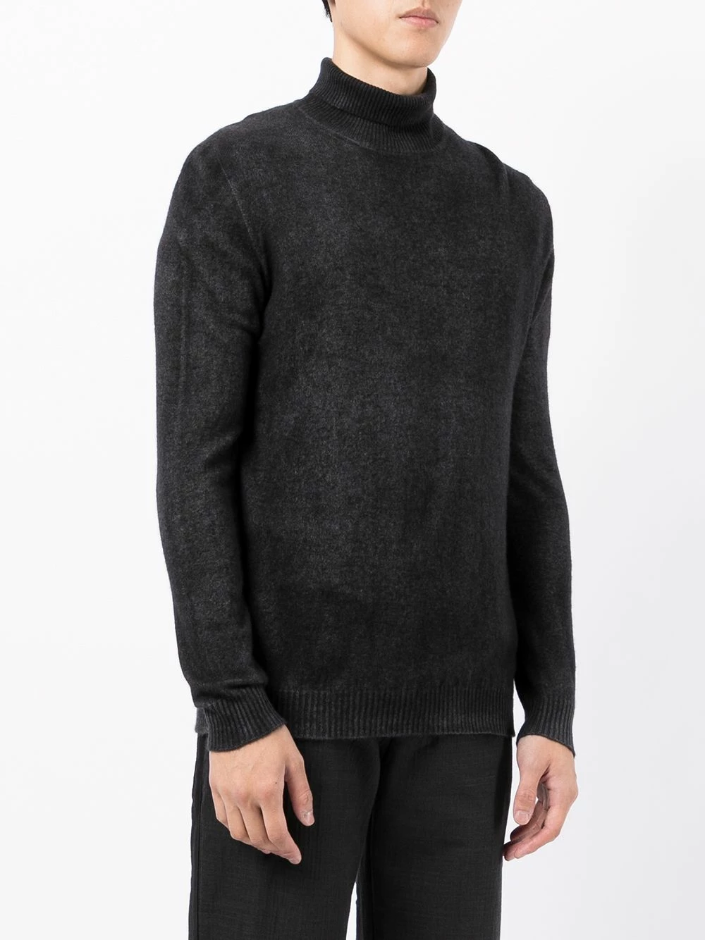 Col roulé, manches longues, poignets nervurés, ourlet droit, ourlet nervuré. Couleur : noir. Matière : cachemire.